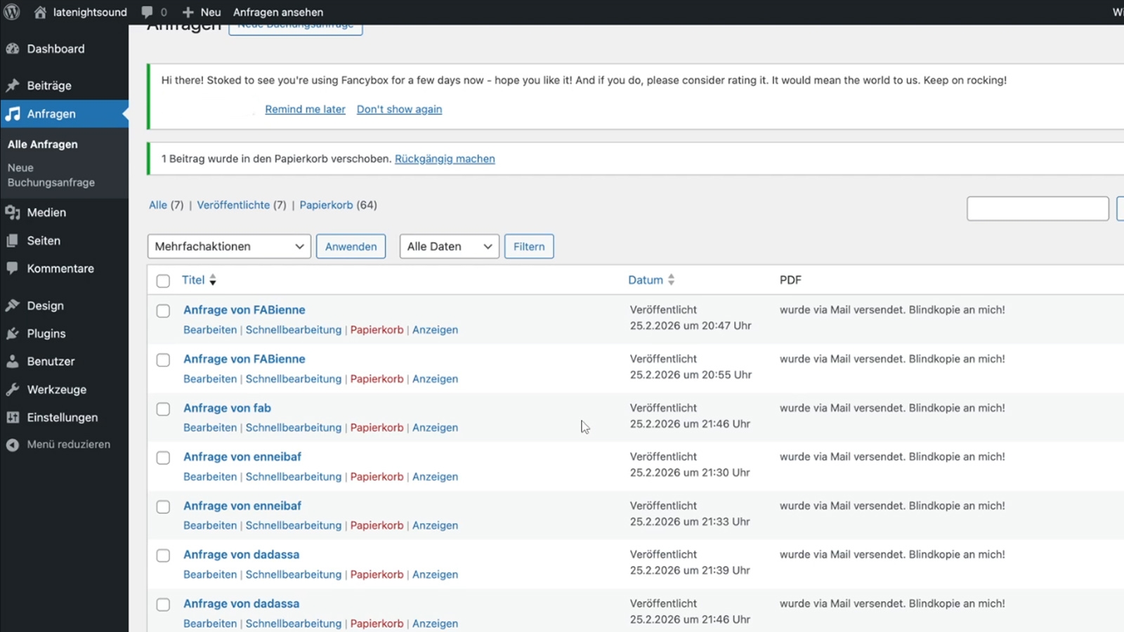 Bitte benutze die Filterfunktion um verschiedene Bereiche anzuzeigen...